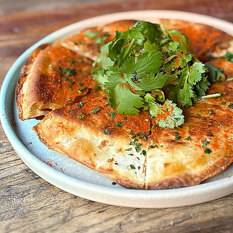 パリッと香ばしく焼き上げたトルティーヤの中には濃厚なチーズがたっぷり。噛むたびに広がるコクと旨みは、一度食べたらやみつき。濃厚なコクと香ばしさが口いっぱいに広がるケサディーヤです。