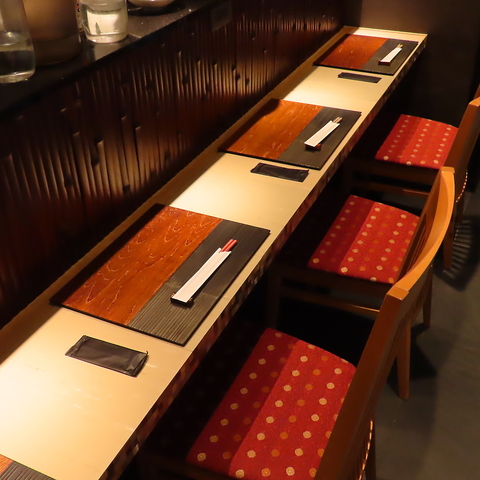 お一人様でも気軽に立ち寄れるカウンター席を5席ご用意しています。お仕事帰りや、ふらっと一杯飲みたいときにもぴったりです。料理人が目の前で調理する様子を眺めながら、大切な人とのデートにもおすすめです。落ち着いた雰囲気の中で、ゆっくりと時間をお過ごしいただけます。