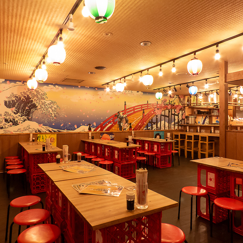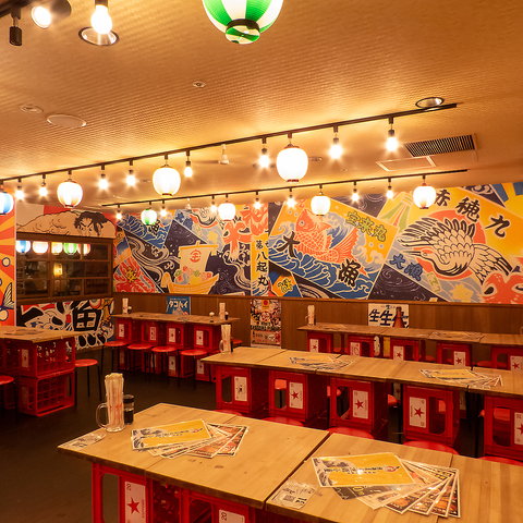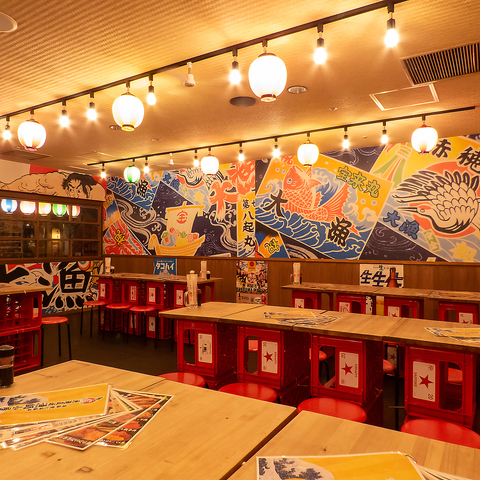 提灯や大漁旗をイメージした壁など漁師町を彷彿とさせる賑やかな雰囲気の店内。まるで港町にいるかのような気分を味わえます。親しい仲間と一緒に訪れれば、笑い声や楽しい会話が飛び交いワイワイとお楽しみいただけます。居心地の良い空間と、本格的な海鮮料理でご来店をお待ちしています!