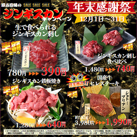 原点回帰の【生で食べられるジンギスカン刺し】などが「半額!」年末の目玉商品「シャトーブリアン」も半額
