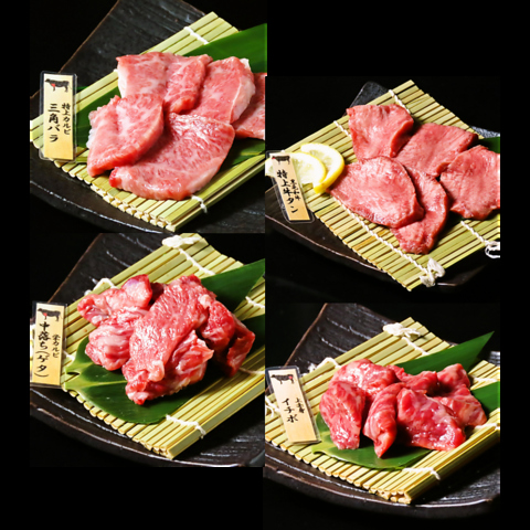 日によって変わる、全国各地からの黒毛和牛をひとつの盛り合わせに!特上カルビ:三角バラ、特上ロース:マキ、上カルビ:ザブトン、上ロース:カブリ、並カルビ:中落ちor並ロース:リブロース芯の5種類の盛り合わせ♪贅沢にいろんな和牛楽しみたいときにぜひ♪