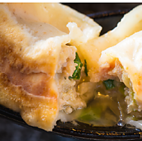 肉汁注意!ヘルシーで香り高い特製の皮に、厳選した食感のよい豚肉を使った餡をひとつひとつ手包み。肉汁が飛び出るほどジューシーな焼餃子です。