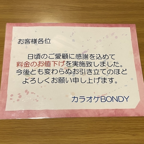 日頃の感謝を込め料金のお値下げを実施しました。初めての方から常連さんまでご来店お待ちしています。