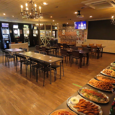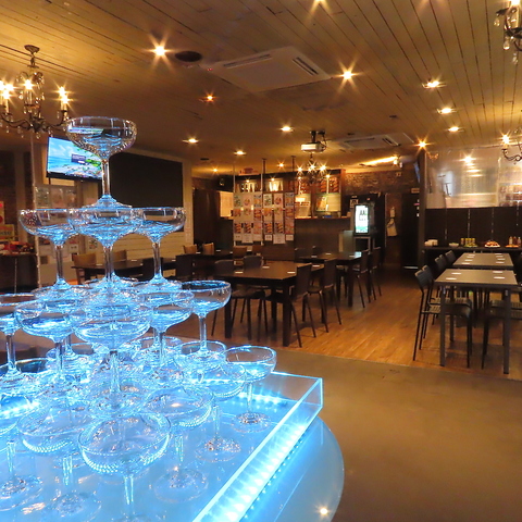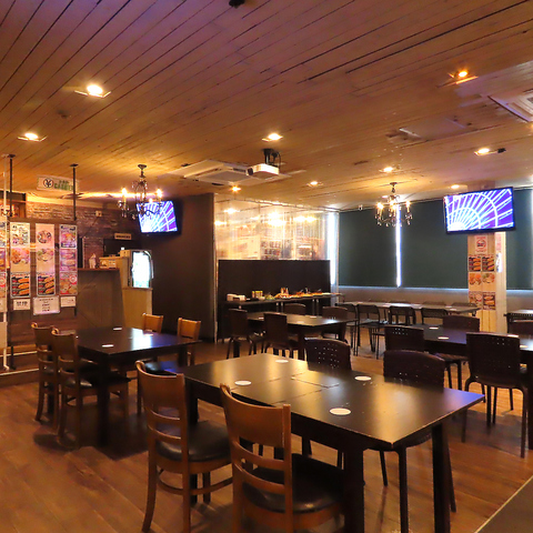 木目調を基調とし、アクセントに使用しているレンガが印象的な店内はとてもお洒落な空間です!開放感もありますので、居心地の良さは抜群です♪ダーツなど遊べる設備も豊富にございますので、最後まで飽きることなくお過ごし頂けます!