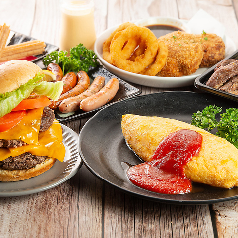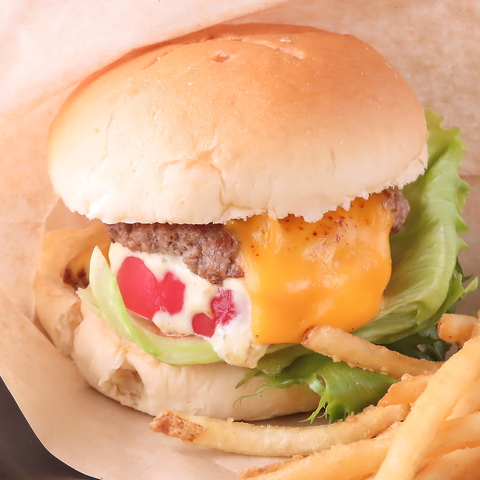 フカフカのバンズに、新鮮なトマトとジューシーなパティがはさまれた絶品ハンバーガーが1300円(税込)で楽しめます!さらに、チュロスやソーセージ盛り合わせなど、女子会や宴会を盛り上げるメニューも豊富にご用意しております!お友達やご家族と一緒に、心温まる美味しい時間をお過ごしください♪