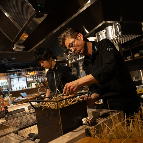 まるで劇場のような内装や、こだわり料理はもちろんのこと、実際に目の前で炉端で食材を焼き上げるシーンを見ながら楽しめますので、旨みがさらに倍増すること間違いなし。