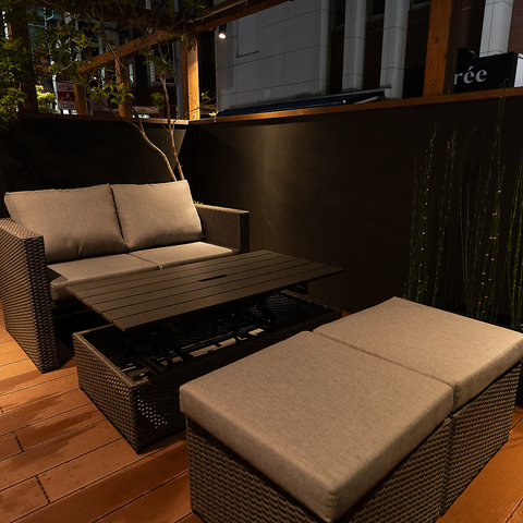 テラス席にはソファをご用意。店内とはまた違う雰囲気でゆったりとお過ごしいただけます。