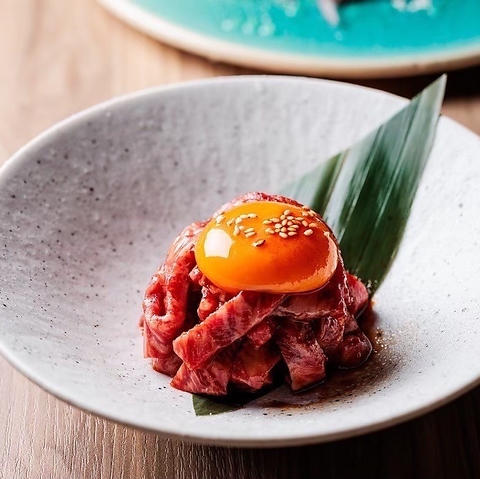 新鮮な純正肉を濃厚な卵黄と絡めて※安心安全な生食用食肉認可店です!小さなお子様、妊娠中のお客様はご遠慮ください