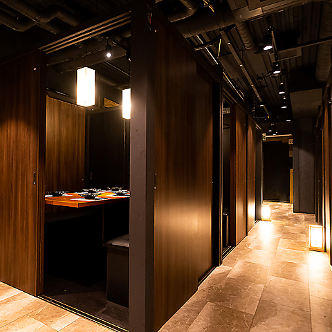 2名様~ご利用可能な個室席を多数ご用意しております。デートや記念日に雰囲気のあるプライベート空間です。扉付き完全個室となっておりますので周りを気にすることなくお過ごし頂けます。お席のみのご予約も承っておりますのでお気軽にご予約ください。