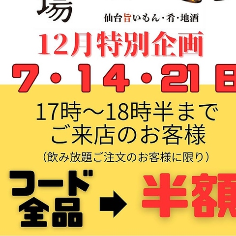 旬の食材にこだわった絶品料理を存分にご堪能下さい!12月限定の特別企画をご用意♪フード半額です☆