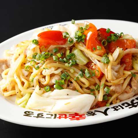 塩だれのコクが絶妙に絡んだ焼きそばにトマトの酸味がアクセント。シメにも、おつまみにもぴったりの逸品です。