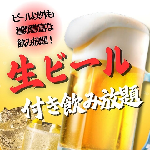 梅田エリア最安値!お得な生ビール付き飲み放題プランで、お会計を気にせず生ビールが堪能できます♪