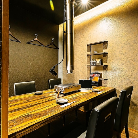 店内は店主のこだわりが詰まったゴージャスでオシャレな個室空間。焼肉屋には珍しいVIPルームもご用意しております。VIPルームには雰囲気抜群の美しいアクアリウムもございます◎接待や会食、デートや女子会、合コンなどに是非ご利用下さい。