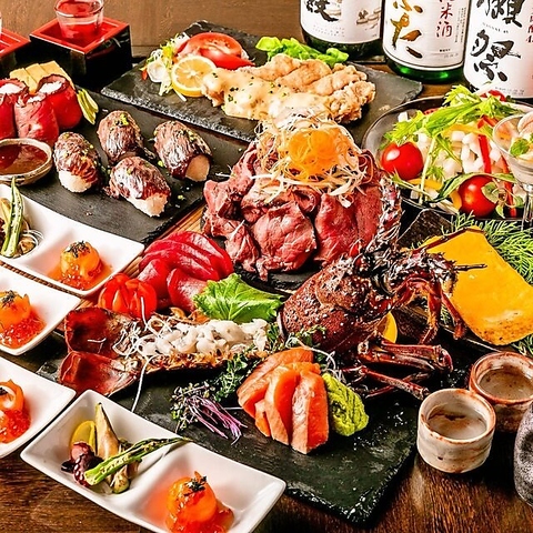 1日5組限定・個室確約の特別プラン。炭火で焼き上げる厚切り十勝牛タンステーキ、本鮪や北海道鮮魚のお刺身、握り寿司や肉寿司まで、お食事飲み物合わせて全90種が2時間食べ飲み放題。さらに揚げ物・サラダ・おつまみ・〆・デザートまでフルラインナップ。質も量も妥協なしの、まさに“贅沢の極み”を味わえる食べ飲み放題