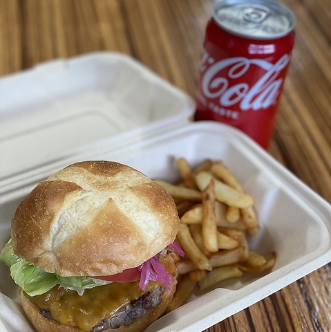 消費税8%+容器代50円 ハンバーガーは全種類テイクアウトできます。※ハンバーガー、ポテト&ドリンクセットのみテイクアウトできます。ランチセット、サラダ&ドリンクセットはテイクアウトしてません。