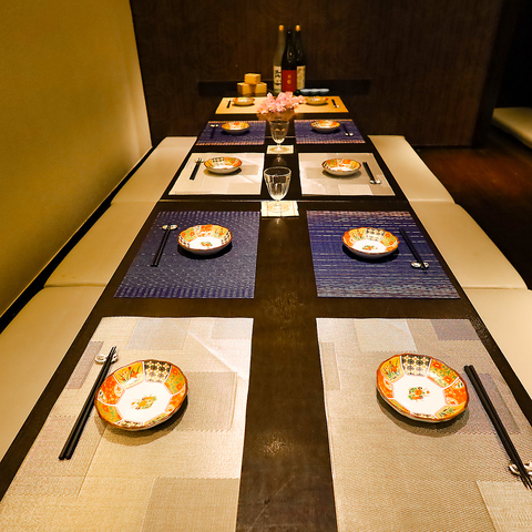 和の趣き溢れる店内は2名様~団体様までご利用可能な個室空間。テーブル席や座敷タイプの個室席は豊橋での接待や歓迎会、送別会などの宴会にも最適。人数様に合わせて完全個室のプライベート空間を多数ご用意しております。誕生日や合コンや女子会などにもオススメ♪ランチタイムのお昼の宴会も大歓迎!!貸切もお気軽にご相談下さい。豊橋 居酒屋