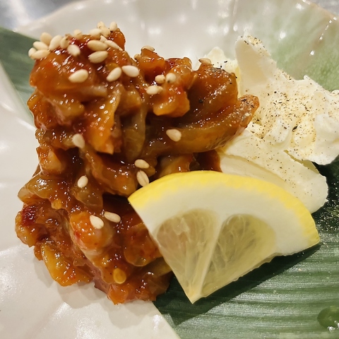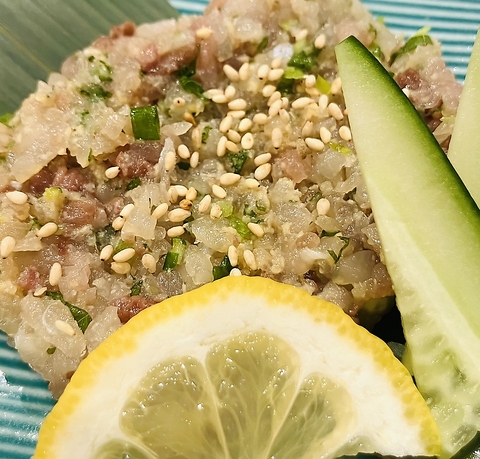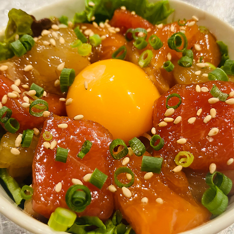 新鮮なお刺身とタレ、卵黄が絡んだやみつきユッケ!
