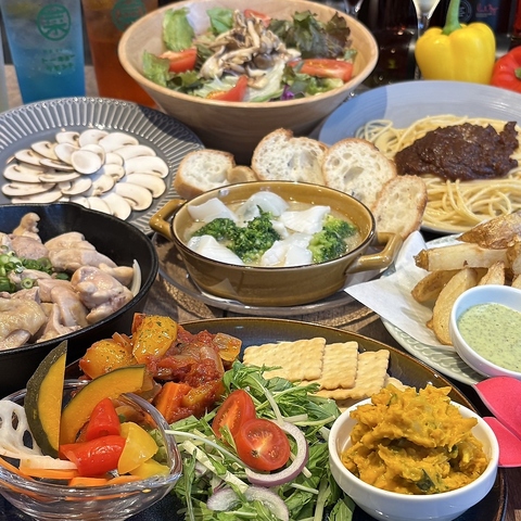 当店では、新鮮な野菜を主役にしたイタリアンベースの創作料理をご提供しており、ヘルシーで彩り豊かなメニューが多数ございます!一品メニューやパスタ、デザートまでご堪能いただけます。また、宴会コースもご用意しており、友人や家族との素敵なひと時を演出いたします。心も体も満たされる贅沢な時間をお過ごしください。