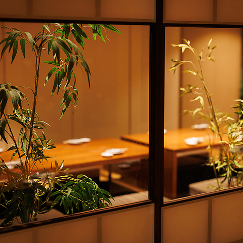 障子越しに映る柔らかな灯りと、季節を感じる竹や緑が心を和ませる癒しの個室空間!まるで旅館の一室にいるような特別感を味わえ、デートや接待、友人との飲み会にもピッタリの上質な時間をお届けします!