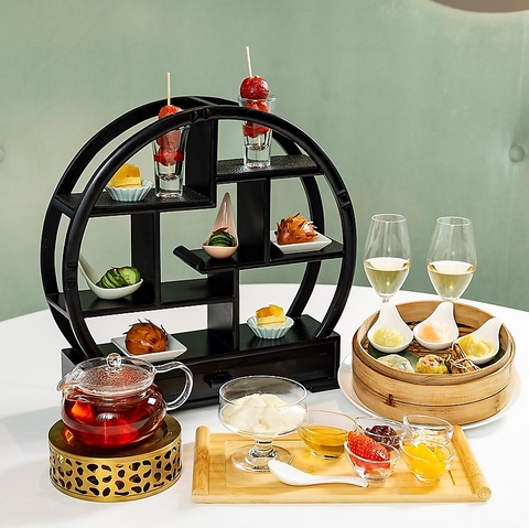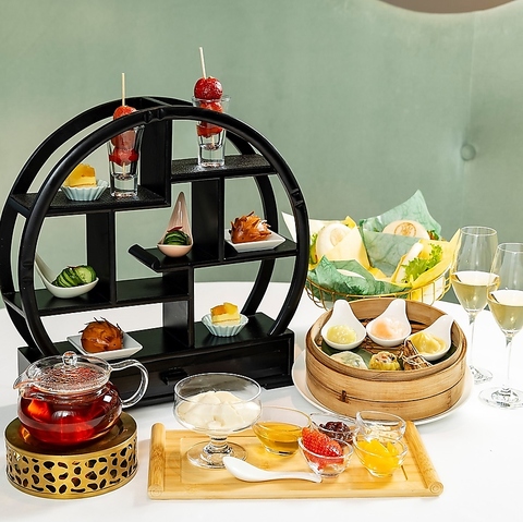 《提供時間:15:30~17:00》ティータイムを優雅に彩る飲茶6種類&甜点5種類をご用意いたしました。オリジナルブレンドの健康茶とソフトドリンクは90分飲み放題です。男女問わず人気の高いプランとなっております。穏やかな午後のひと時を、洗練された上質空間でゆっくりとお過ごしください。
