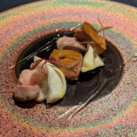 前菜、メイン、デザートなど全7品。メインは仙台牛ロース50gとフィレ40gの食べ比べで、仙台牛の柔らかな食感やまろやかな風味をご堪能ください。また、ソムリエがお料理に合わせてセレクトしたペアリングは、ペアリングワイン(4種)+4,800円(税込)、ノンアルペアリング(4種)+4,000円(税込)でコース料理に追加が可能。