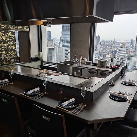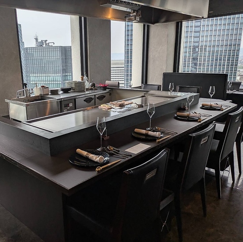 当店は様々な席タイプをご用意しております。窓際カウンター席は、夜景を眺めながら鉄板焼きを同時にご堪能いただける特別空間◎デートや記念日のお祝いに選ばれています。カウンター席では鉄板焼きパフォーマンスを目の前でお愉しみいただきながらお料理をお召し上がりいただく心躍る空間。シーンに合わせてご希望のお席をご用意いたします♪
