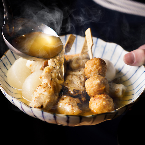 豚骨特有のまろやかなコクと深い旨味をたっぷり含ませたこだわりのおでんをご用意しました。濃厚でありながら後味は軽やかで、お酒にも食事にもよく合う一品。定番の大根や卵から、茹でタンや焼売など様々な組み合わせが楽しめます。最後は残ったスープにラーメンやご飯を加えて「締め」まで楽しめるのも魅力のひとつです。
