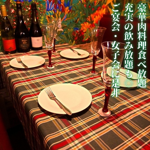 メディアで話題沸騰中の国産牛肉シュラスコと自家製ローストビーフが食べ放題になる、お肉好きにはたまらないコースです。お肉本来の旨みを最大限に引き出す調理法で、最高の状態でお届けします。お肉の旨みを存分に味わえるので、パーティーや宴会に大人気。心ゆくまでお肉を堪能したい方は、ぜひこのコースをご注文ください!