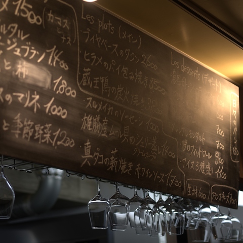 バラエティ豊富な前菜や、お酒に合う魚介を始めとした様々なお料理をご用意しております。華やかな見た目と深い味わいのお料理はシェフのこだわりが詰まっております。お好みの冷菜、温菜、メイン、デザートをお選びいただくことでお客様オリジナルのコース仕立てでご提供。厳選したワインとご一緒にどうぞ。