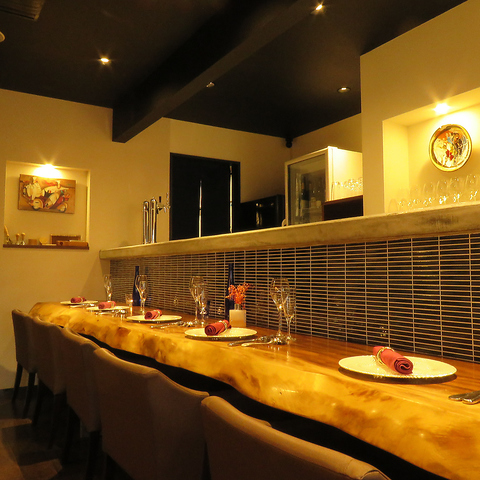 1~2名様はカウンター席にてお食事をお楽しみいただけます。座り心地にもこだわった椅子をご用意しておりますのでごゆっくりお寛ぎいただけます!カウンター席でもコース利用可能です!