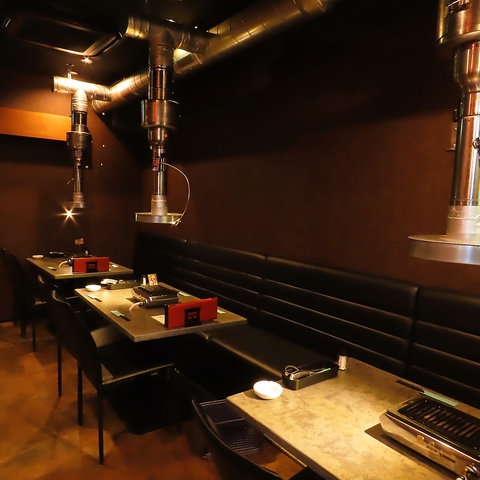 店内は、シックな色合いで統一されたオシャレな空間です!各テーブルには、グリルと無煙ロースターを1つずつ完備。お気に入りのファッションでご来店いただいても、においを気にせず焼肉をお楽しみいただけます♪洗練された雰囲気の店内は、デートや女子会にもピッタリ!仕入れからこだわった当店自慢の焼肉をこころゆくまでお楽しみください!