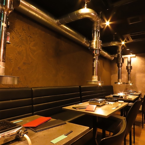 店内は、シックな色合いで統一されたオシャレな空間です!各テーブルには、グリルと無煙ロースターを1つずつ完備。お気に入りのファッションでご来店いただいても、においを気にせず焼肉をお楽しみいただけます♪洗練された雰囲気の店内は、デートや女子会にもピッタリ!仕入れからこだわった当店自慢の焼肉をこころゆくまでお楽しみください!