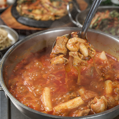 コシのあるタコ、香ばしいホルモン、そして深い風味を加えるエビ。またはサムギョプサル、イカが調和した当店おすすめの料理です。ナッコプセの他にも、オジナッサム(イカ・タコ・サムギョプサル)やナクサムセ(タコ・サムギョプサル・エビ)、オジナッコプ(イカ・タコ・ホルモン)からお選びいただけます。