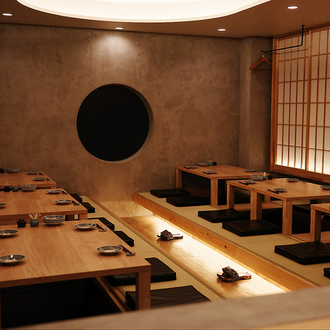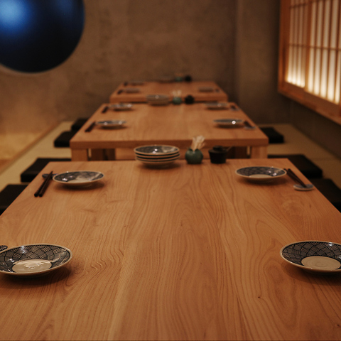 | 貸切 | 14名様×2 | 貸切は最小20名様~OK!最大24~28名様の掘り炬燵とカウンターが6席! |
