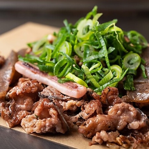たっぷりのねぎと豚肉、油かすを焼き上げ、 甘醤油とレモンで仕上げます。 さっぱりとした味わいと、醤油の風味豊かなお好み焼きです。
