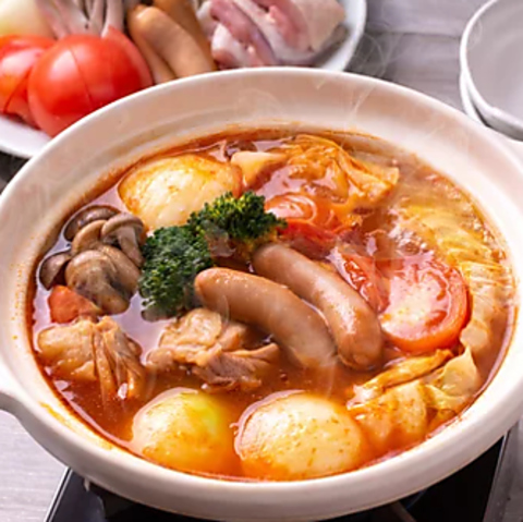 女性に大人気!当店自慢の特製トマト鍋は、濃厚な甘みが凝縮した完熟トマトを贅沢に使用。魚介や鶏肉の旨みを、ハーブとガーリックが香る特製スープが引き立てます。見た目も華やかで、デートや女子会にぴったり!トマトに含まれるリコピンで美容と健康もサポート。罪悪感なく楽しめるヘルシーさが魅力です。