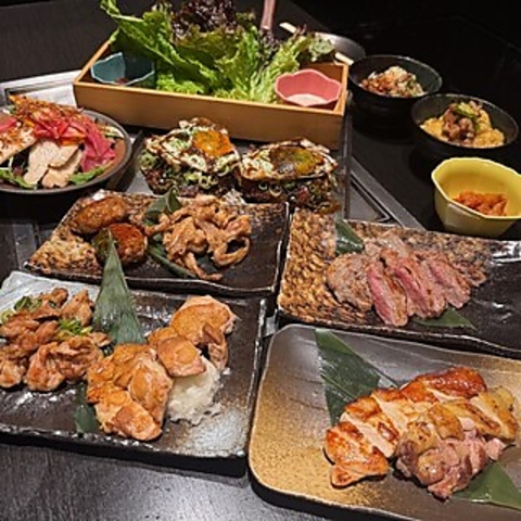 日本3大地鶏の比内高原地鶏や厳選した銘柄鶏の鉄板焼きと色鮮やかな新鮮巻き野菜で鶏肉の旨味と新鮮野菜でヘルシーな食感を楽しんでお召し上がりいただけます。