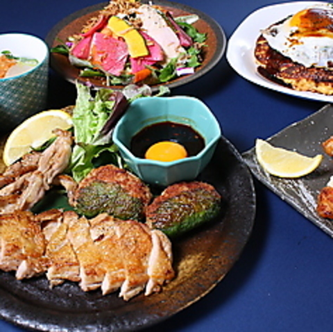 全く新しい味わい、新しいスタイルをお楽しみください。高原比内地鶏ならではの鶏肉とは思えないほどリッチな味わいと噛み心地を新鮮野菜で巻く事により、さっぱりとヘルシーに召上っていただきます。3種類の特製つけだれも深い味わいにアクセントを加えてくれます。是非一度ご賞味ください。