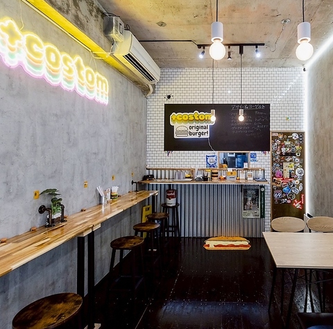 テーブル席が2つとカウンターだけの小さなハンバーガーショップ♪