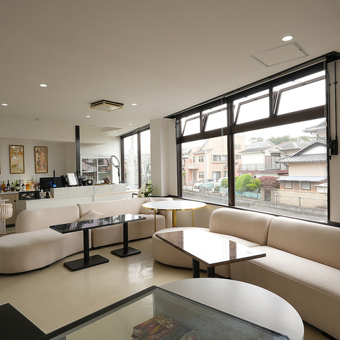 テラスだけでなく、屋内ラウンジバーもご用意!白を基調としたおしゃれなラウンジで、穏やかな時間を堪能。