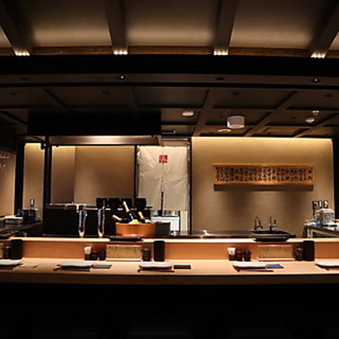 店内に足を踏み入れると、白木のカウンター席が目の前に。お一人様のご利用やパートナーとのお食事にぴったりのカウンター席、ご家族やご友人とのご利用に便利なテーブル席、接待やおもてなしなど特別なお食事にもご利用いただける個室など、様々なシーンにご利用ください。軽快なジャズが流れる大人の空間でくつろぎのひとときを。