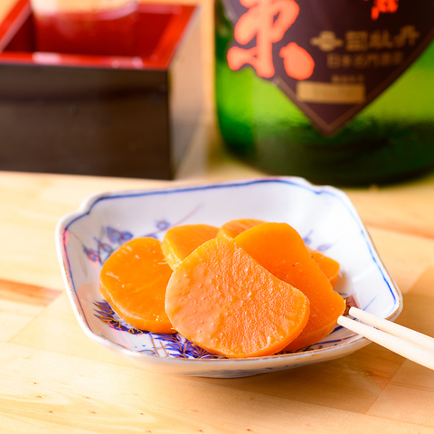 鹿児島のみそたくあんは、麦みその香ばしさと熟成たくあんの味わいが絶妙に調和。一口食べると口の中に広がる旨みに、思わずお酒が進む事間違いなし!楽しい時間を過ごそう♪