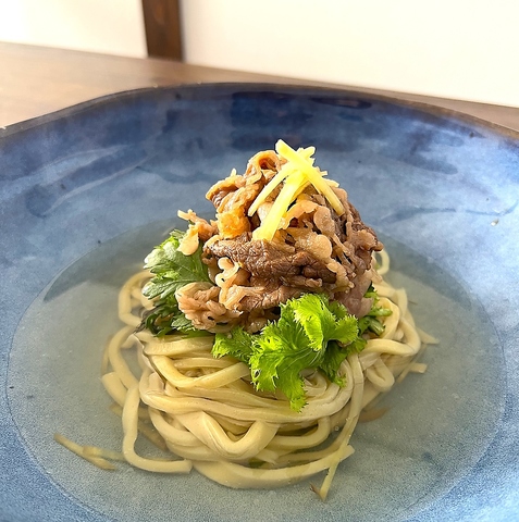幻の所沢牛を使用した澄まし肉汁おうどんと、スパイス香る所沢牛プレミアムカレーうどん。和だしを軸にしたモダンうどんは、カルボナーラやトマトなど多彩な味わいもご用意。前菜お重と合わせ、選ぶ楽しさのある新しい和のスタイルをご提案します。