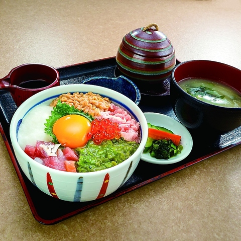 牛深漁港直送の魚介を豪快に盛り付けた海鮮丼は、見た目も味も大満足。日替わりのネタで旬を感じられるのも魅力です。特製醤油との相性も抜群で、リピーター多数の人気メニューです。