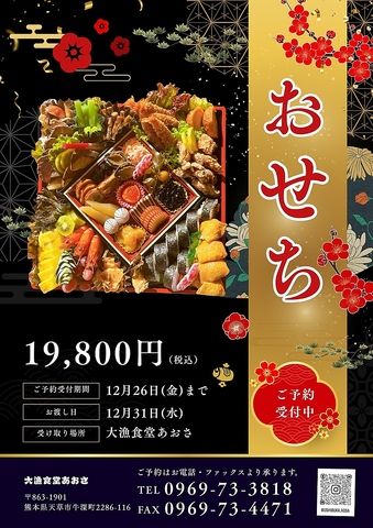 2025年12月26日迄の受付でおせち料理のご注文も受付しております。年始の華を飾る大切なお料理を手掛けます