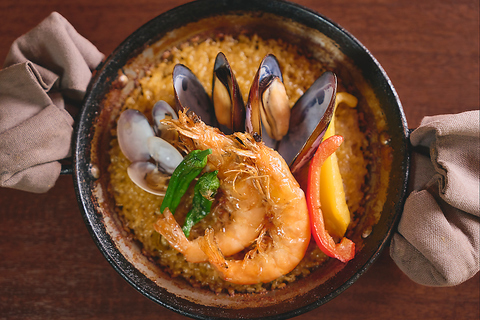 魚介のパエリアは、スペイン・バレンシア地方発祥のパエリアの一種で、魚介類を中心とした具材を使用した米料理です。深い海の香りと旨味が味わえます。