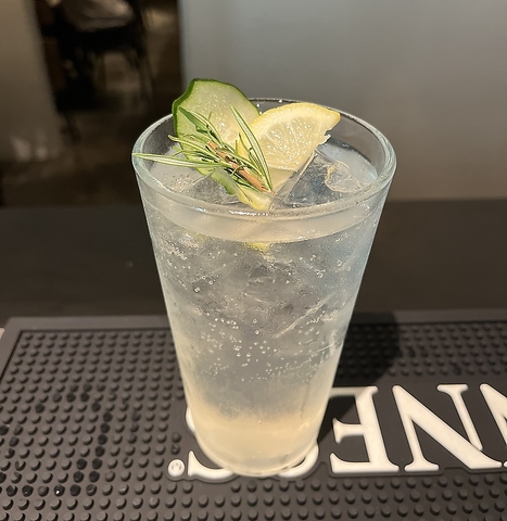 自家製ローズマリーシロップとキュウリのガーニッシュがまさにモダンブリティッシュなテイスト!