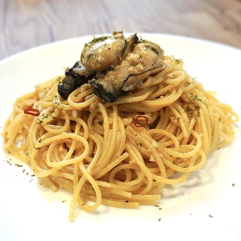 締めにぜひ食べて頂きたい「牡蠣ペペロンチーノ」。当店にきたら注文率90%を誇るこちらのメニュー♪広島県産の大粒の牡蠣がゴロゴロ3つ入っている牡蠣好きも大満足の1品。味付けはあっさり、ぺろっと食べられてしまいます★〆におススメなので、お一人でももちろん、お友達とシェアして、ぜひお召し上がりください♪