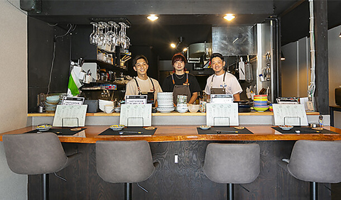 カウンター、テーブル、個室を完備◆大人数での宴会利用も可当店の入口はガラス張りで、開放感のある空間が広がります。オープンキッチンになっておりアットホームな雰囲気が魅力です。1階にはカウンターや丸テーブルスタンドをご用意。2階は4名様掛けテーブルが6卓あり、すべて移動できるため大人数での宴会も可能です