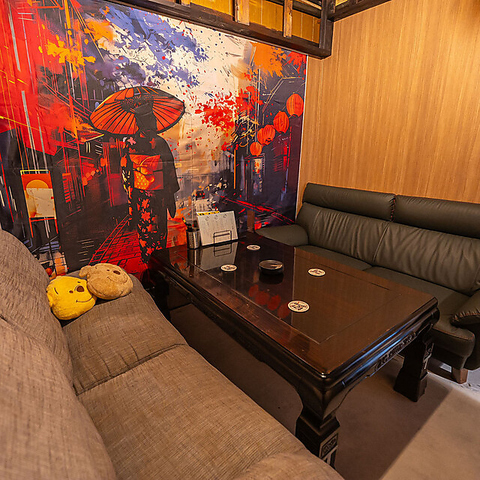 【個室】プライベート空間を楽しめる個室席は、最大6名様まで収容可能となっております!個室のお席はソファー席となっており、快適な空間でお食事をお愉しみいただけます。会社のお集りなどには個室席がオススメです♪